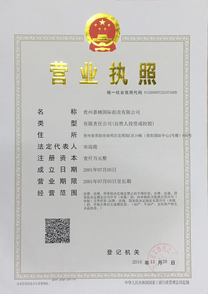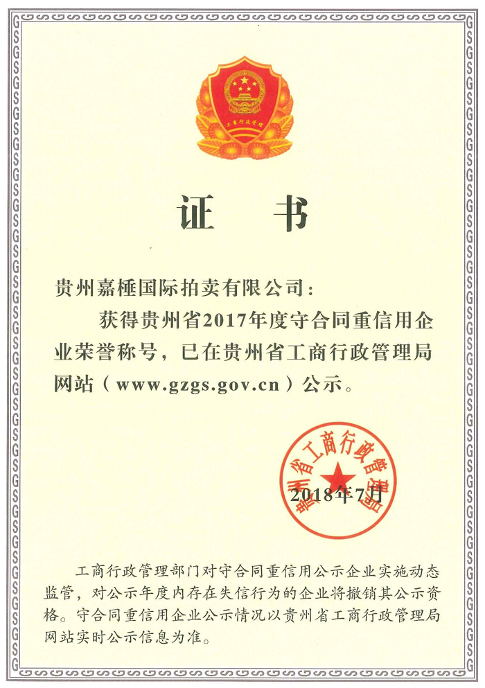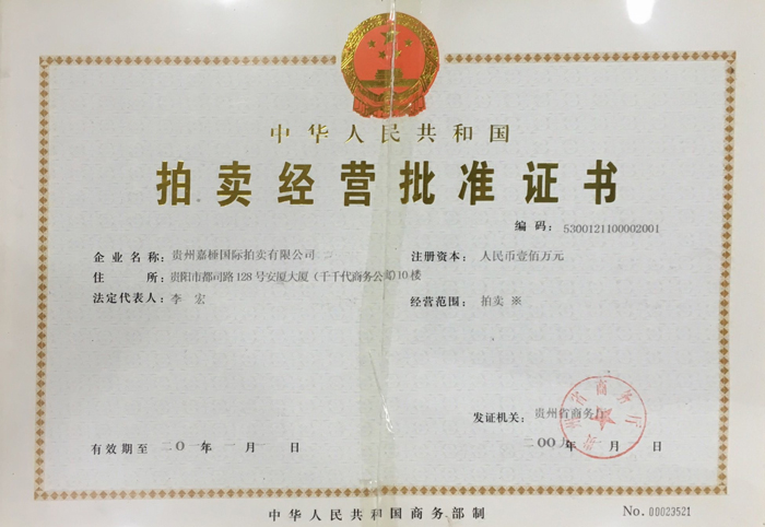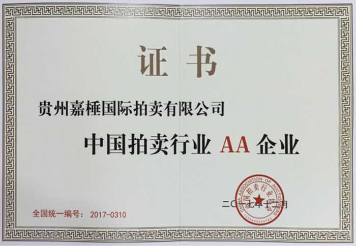 貴州嘉棰國際拍賣有限公司是主要從事動產、不動產、無形資產和文物藝術品拍賣業(yè)務的大型綜合性拍賣企業(yè),是中國拍賣行業(yè)協(xié)會會員,貴州省拍賣行業(yè)協(xié)會理事單位,中國拍賣行業(yè)協(xié)會AA級資質企業(yè),貴州省連續(xù)十一年重合同守信用企業(yè),全省拍賣先進企業(yè),貴州省公物拍賣人。公司充分利用多年來積累的客戶資源和全新的經營理念服務于貴州經濟發(fā)展。同時也為貴州省國有企業(yè)的資產重組、改制改造以及不良資產的變現(xiàn),起到積極的作用。貴州嘉棰國際拍賣有限公司自成立以來,多次成功地組織了房產、土地、機器設備和各種物資等標的拍賣。并于2001年12月成為第一批貴州省高級人民法院及多家金融機構指定的拍賣企業(yè)。 公司下設產權部、市場發(fā)展部、財務部、人事部和辦公室。現(xiàn)有員工11名,大專以上學歷員工占總數的90%,擁有精通業(yè)務的專門人才。有國家注冊拍賣師3名,公司工作人員大多參加過中國拍賣行業(yè)協(xié)會組織的從業(yè)資格培訓。公司堅持“客戶至上,執(zhí)業(yè)嚴謹,公平競.....